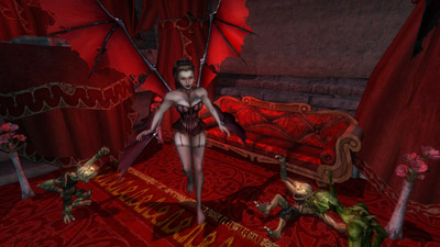 Within the Dark Tower is the Throne Room; from here travel to and from the outside world via the Tower Portal. Down in the Dungeon, specimens of defeated enemies are kept in readiness for the Overlord and your minion horde to have a bit of fun with. Meanwhile, in the Overlord’s Private Quarters, take a break from world domination and enjoy the company of your mistress?