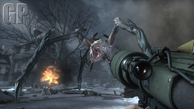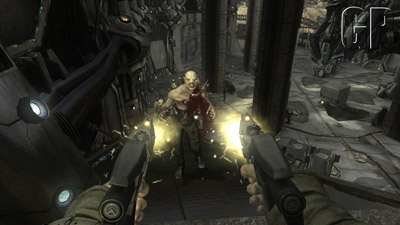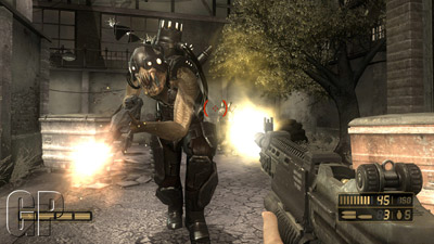 The controls are easy to pick up and start to feel natural in a matter of minutes. Very smooth movement and atmospheric levels go to create a somewhat creepy feel to some parts of the game. The AI is amazing and the Chimera actually fight for their lives, taking cover and waiting for a clear shot of you, hiding from your bullets behind what they can. (That’s when the Auger comes in handy). The levels are both sprawling and diverse and include stages like a burnt out bus garage being used to stage an impromptu Alamo, to the guts of the Chimeran stronghold which is full of dark tunnels that require careful negotiation.