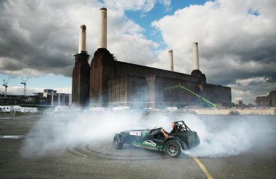 Driving the Caterham sports car in the pictures was the UK’s top stunt driver, Russ Swift, who got through three sets of tyres to create the image.