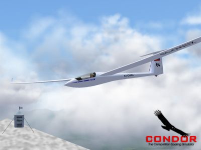 Condor ? The Competition Soaring SimulatorDevelopers, Condor Soaring, have concentrated on creating an environment which will immerse the player in a genuine competition flying experience. Aerodynamics and weather physics were a major focus of the development, and the result is an amazingly realistic feel of flight incorporating all the weather conditions and challenges which face a real soaring pilot on a competition day.