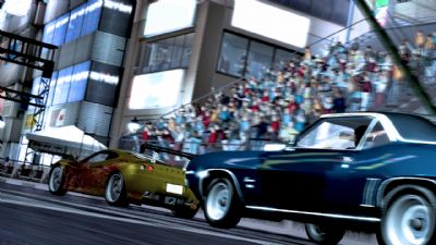 Juiced 2 is more concerned with Drifting & power sliding this time round, so it is important to spend your hard earned cash on the correct car for the job in hand. All the expected vehicle licences are here from Audi to VW. All are totally moddable to the nth degree, and you can take your creations online to sell for cash! Talking of the green folding stuff, you can also bet against other drivers that you can beat them, and collect your winnings once you have wiped the floor with them-just don’t get to cocky. Also in Juiced 2, there is a cracking feature called “Spooking” whick means you can tailgate one of your rivals until a meter fills up above thier head and they will veer off into the side hoardings…which is nice!
