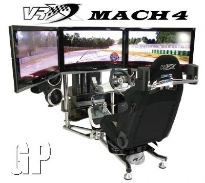 VRX Industries Ltd., a premier designer, developer, and manufacture of home & corporate entertainment products, today announced the launch of the ultimate, home-entertainment race simulator: the “VRX MACH 4″ for this holiday season. The VRX MACH 4 is a masterpiece of cutting edge technology combined with an ascetically-stunning design. The VRX MACH 4 is powered by four Xbox 360’s, outputting 4 Teraflops of power, which drive the 3 Sharp Aquos LCD’s; the fourth Xbox 360 powers a 7” LCD rear view mirror which elevates the virtual racing experience to a new level of realism