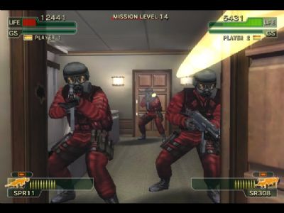 I guess you are wondering why this gets such a high mark considering its length. Well read on and I’ll enlighten you. Ghost squad is made up of 3 on rails levels. Each of these levels is about 8 minutes each. Now during these three levels, you have a number of choices that open up alternate routes, so this game brings you back time and time again to try out all the combinations of routes. You also get soe cool mini games like defusing bombs & mines as well as a couple of sniper sections.Also after each play though you gain in experience and this means extra weapons and costumes.