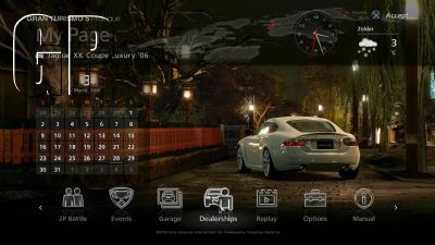 So, to the game itself. After what seems like forever, you have to install the game on your hard drive (weather you buy it off PSN or go to a shop and buy the shiny Blu Ray disc with booklet) It then tells you there is an update available that you also have to download before you can do anything. Okay, everything updated (and it took so long I had time to write a review for Bully on the Wii!) you come to your GT desktop, which looks pretty damn stunning.