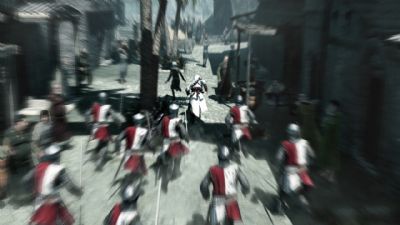 Assassin’s Creed is set during the 3rd crusade, the apparent year in the game is 1191. You follow an assassin (pretty obvious) named Altair. He is a member of the clan of assassin’s and you set out on a mission to eliminate 9 key people that are plotting out the crusades. You play Altair through one of his ancestors in the future, for a company who is allegedly trying to find something hidden in the past around the time of Altair being alive. There are 4 main cities to explore, Jerusalem, probably the most commonly known, Damascus, Masayaf and Acre. This story line gives the game a great edge, also taking into account that the games environment is based on actual historic fact.