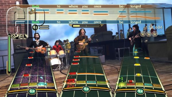 The Beatles: Rock BandInstead of plonking you in one of the charismatic Liverpudlians shoes for a couple of songs to rack up a high score, The Beatles: Rock Band takes you through the short, yet undeniably influencial career of the band, from the cluttered gatherings at ‘The Cavern’, to the studio sessions at ‘Abbey Road’ before capping it all off with the final performance on ‘The Apple Corps. Rooftop’.