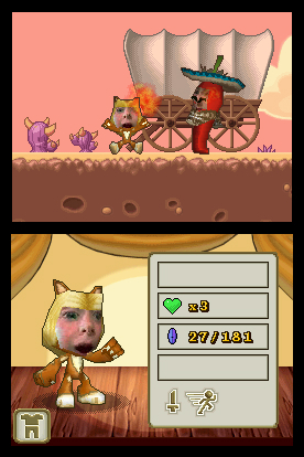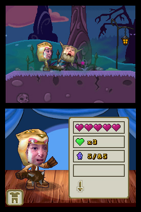 After capturing their picture and recording their voice, players can choose to switch between the eight hero costumes throughout the game, from a muscle-bound barbarian to a slick spy or a sneaky ninja. The adventure unfolds as players discover that their identity has been stolen by the arch villain, The Professor. They will need to track him down across 15 action-packed levels, each loaded with memorable characters– both friend and foe. Players will face many challenges along the way as they try to clear their name including battling baddies across the Haunted Hills, collecting stars throughout the Frantic Frontier and solving platforming puzzles in the Mystic East.