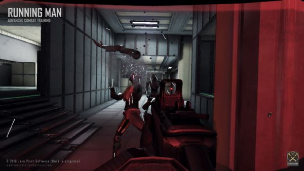 “In our previous slice, Bullseye, players were confined to a small military shooting range filled with simple cardboard targets. This time players will experience complete freedom of movement and they will need to move fast to survive the waves of charging Training Robots. At the same time Running Man sets a series of events in motion, that eventually will lead to the revelation of the back story of the Interstellar Marines trilogy”, says Kim Haar J�rgensen, Game Director, Zero Point Software.