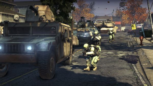The scene set, we were given a brief lowdown of how the multiplayer game works. At its most basic, it is a team based shooter affair – initially with a Battlefield style feel. Fight on foot, in land vehicles or in the air.