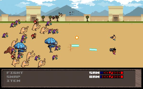 Today we’re checking out new art from The Random Encounter: The classic RPG turn-based battle gets a seriously frantic overhaul as Vlambeer (Super Crate Box, Radical Fishing) turns their talent loose on the first Serious Sam role-playing game. Yup, you read that right: Serious. Sam. RPG. Traverse a harsh and dangerous world map as Serious Sam and his team are thrown into rapid-fire battles against towering numbers of enemies on their way to glory against the legions of Mental’s horde. Arm your squad to the teeth with massive ordinance, throw down some special items and take aim at the hordes of charging enemies holding that sweet, sweet loot you crave so badly.