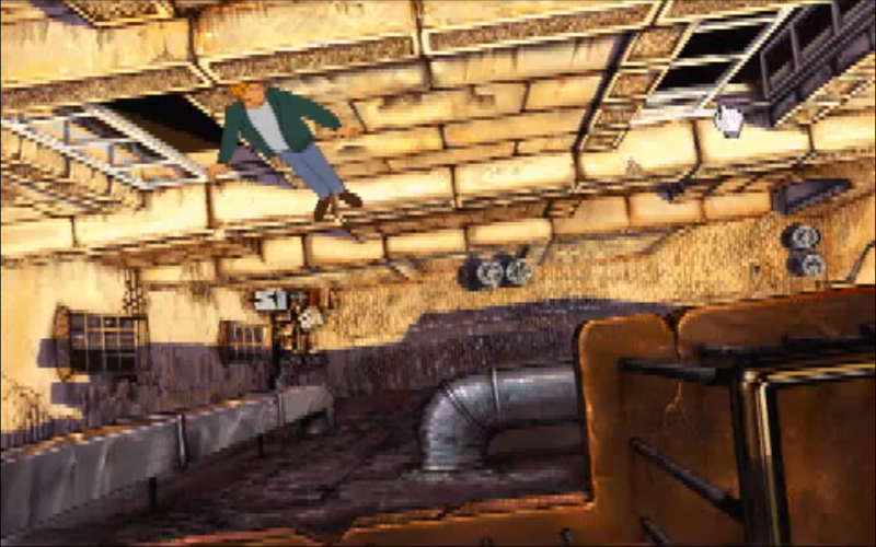 One clear example of this that springs to memory, is that with the exception of a single instance in Monkey Island, I cannot remember any Lucas Arts adventure game in which it is possible for the main character to die through the actions of the player, whereas Broken Sword presents the player with several instances where if they do not complete the correct action, or set of actions quickly enough, the main character will be killed, and you will be forced to resume the game from the last time you saved. While some may find this slightly harsh, it really rewards quick thinking and resourcefulness, and definitely adds a sense of authenticity to the story.