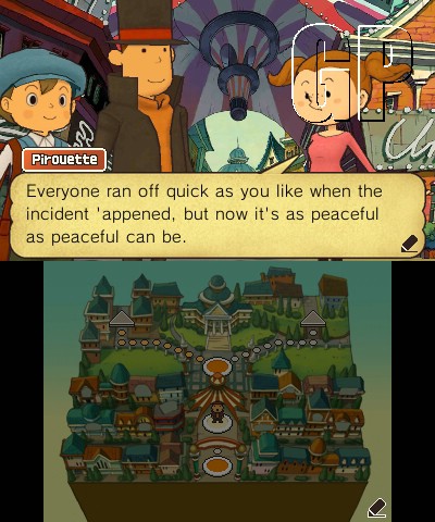 Each time a player is presented with a puzzle in the game, the basic scenario is displayed on the Nintendo 3DS system’s top screen. Players then use the stylus on the touch-controlled lower screen to write, draw or drag objects as needed to solve the puzzle. Hint Coins can be collected and redeemed to provide help when players are stuck on a puzzle or elusive clue. There’s also space to write notes to help get through tricky puzzles, with the ability to use multiple pen colors. Players are rewarded for solving puzzles with Picarats, the in-game puzzle currency. The more accurate they are, the more Picarats they’ll receive. The game also includes minigames for an added layer of fun without the pressure of getting through the main storyline.