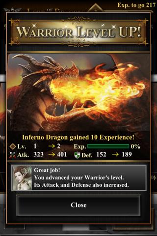 Lord of the Dragons is a card battle RPG released by KLabGames from Japan. It’s free to play but with optional in-game purchases available. First you choose your class from the normal selection, Human, Elf, Dwarf, Ogre etc. and then you set out on your adventure. The objective of the game is collecting Warriors to your “deck”, and add them to your defense or attack to become stronger.
